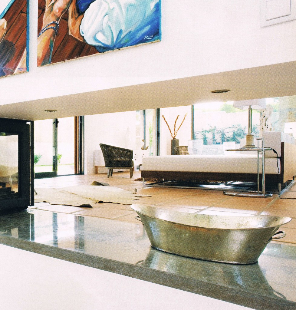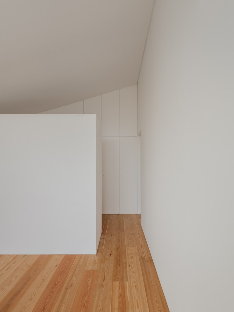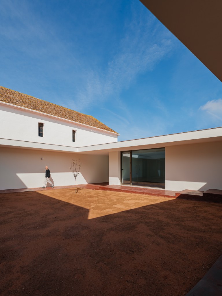 A casa organiza-se em torno de um átrio central, que liga as diferentes zonas e cria um ambiente de receção e convivência. A luz natural e a ligação entre interior e exterior definem o caráter do espaço.